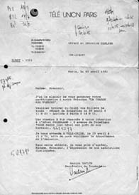 Nous avons été prévenus par ce courrier de Télé Union daté du 19 avril 1982.