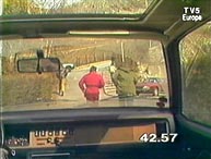 Je me rappelle que le caméraman et l'ingénieur vidéo ont été pris en charge par un automobiliste. En fait, il s’agissait de quelqu’un de la production qui a bien joué son rôle de « Monsieur tout le monde ». Sauf erreur, la voiture était une Renault.